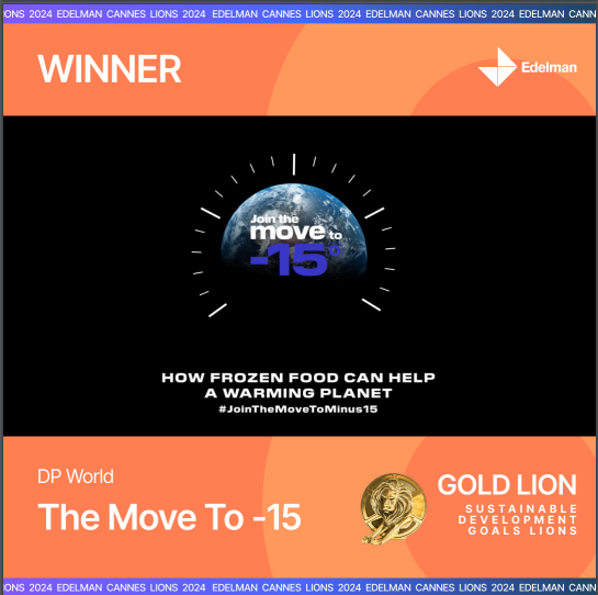 As a key member of the writing team for DP World’s “The Move to Minus 15” initiative, I helped produce the essential written components that explained the technical aspects of the project and engaged both the industry and the judges at Cannes. This initiative won the prestigious Titanium Lion at the Cannes Lions Festival of Creativity in June 2024 and also received a Gold award in the Sustainable Development Goals category and a Silver in Creative B2B for Corporate Purpose & Social Responsibility.
